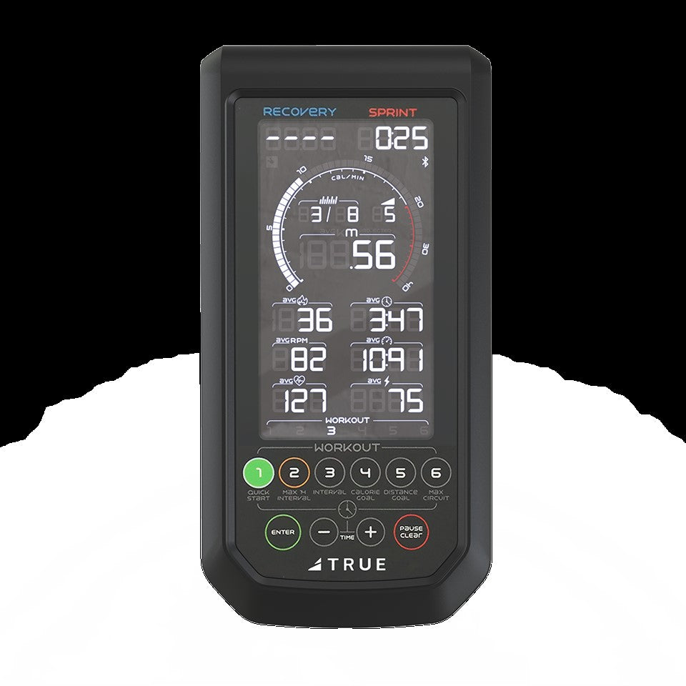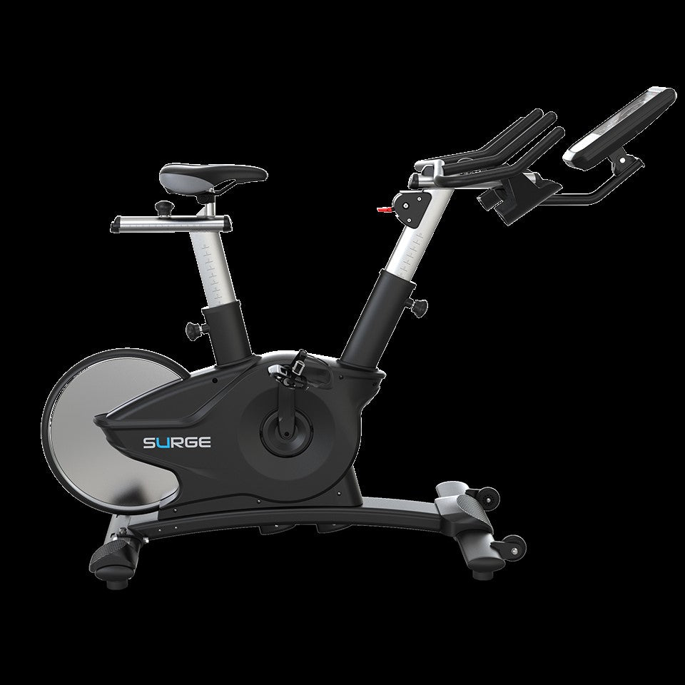 This console features a 7-inch backlit LCD screen with a dynamic calorie meter and gives exercisers real-time feedback on all performance measures. With 6 built-in programs, the Surge Spin Bike can provide motivation for any user. Performance metrics include Watts, Time, Distance, Calories, RPM, and Heart Rate. Wireless Bluetooth Polar and Ant+ Compatible.