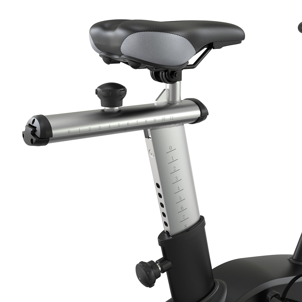 The dual-adjustable seat provides horizontal and vertical adjustments, ensuring biomechanically correct positioning.